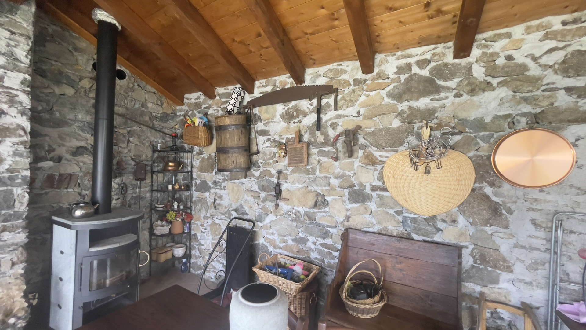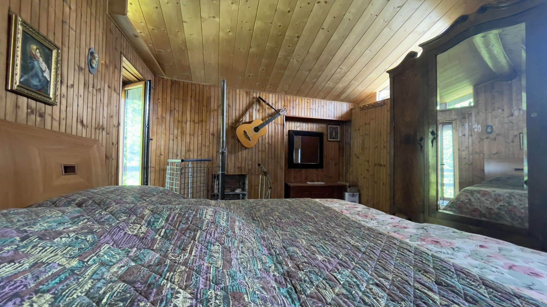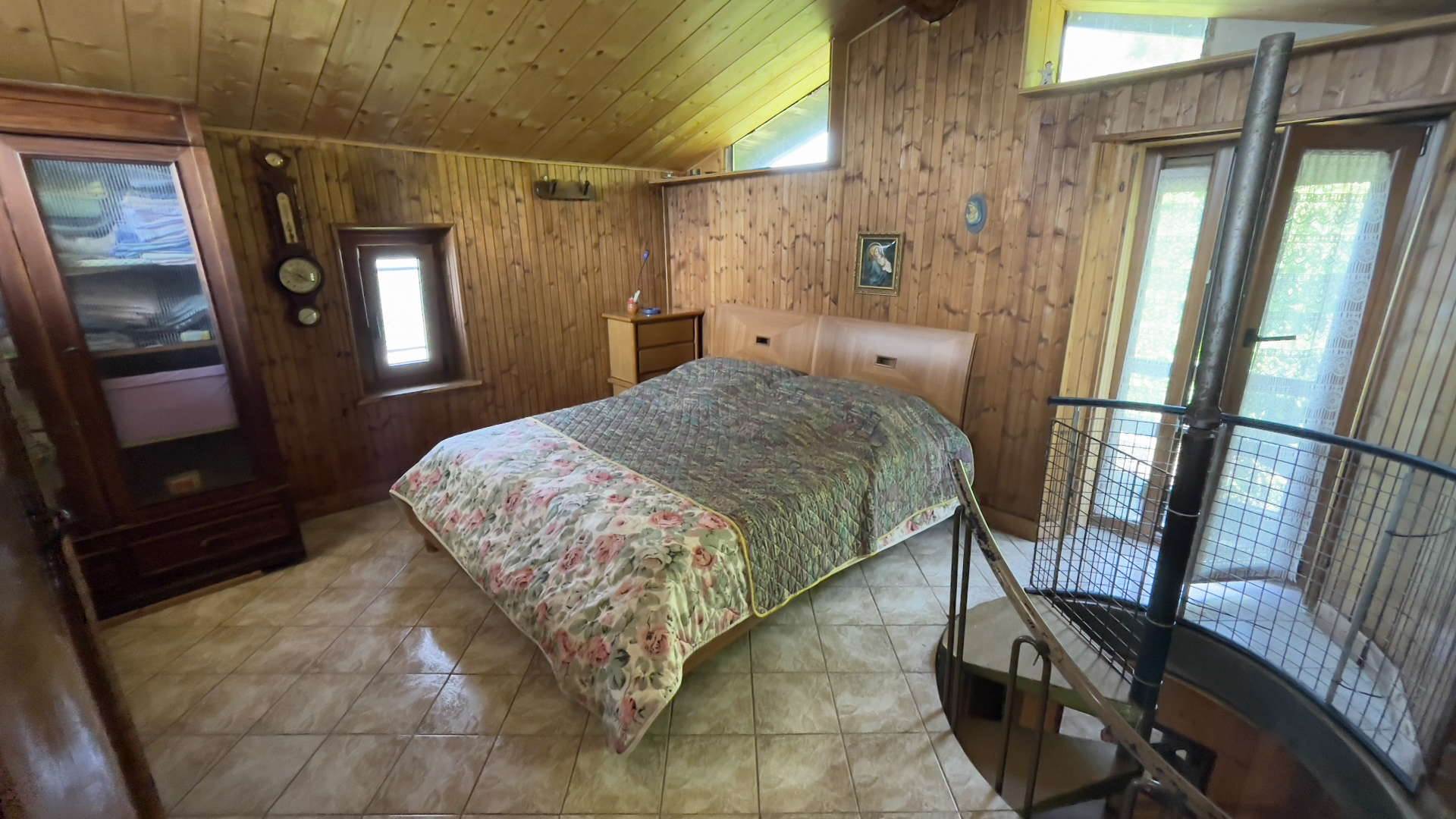 On the first floor, accessible by internal staircase, there is a large bedroom with balcony, while in the basement there is a comfortable cellar, perfect as storage room. The cabin is sold fully furnished, with the exception of personal effects.