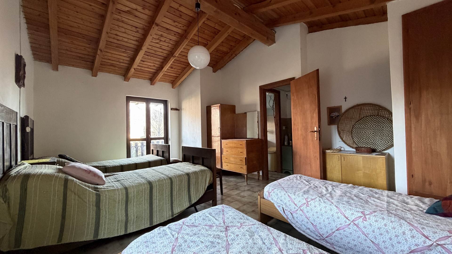 • First floor (accessible via internal staircase): large bedroom with four single beds and balcon with view, finally the bathroom with window and bathtub.The cabin is sold furnished, ready to be used immediately as a holiday home or mountain retreat.