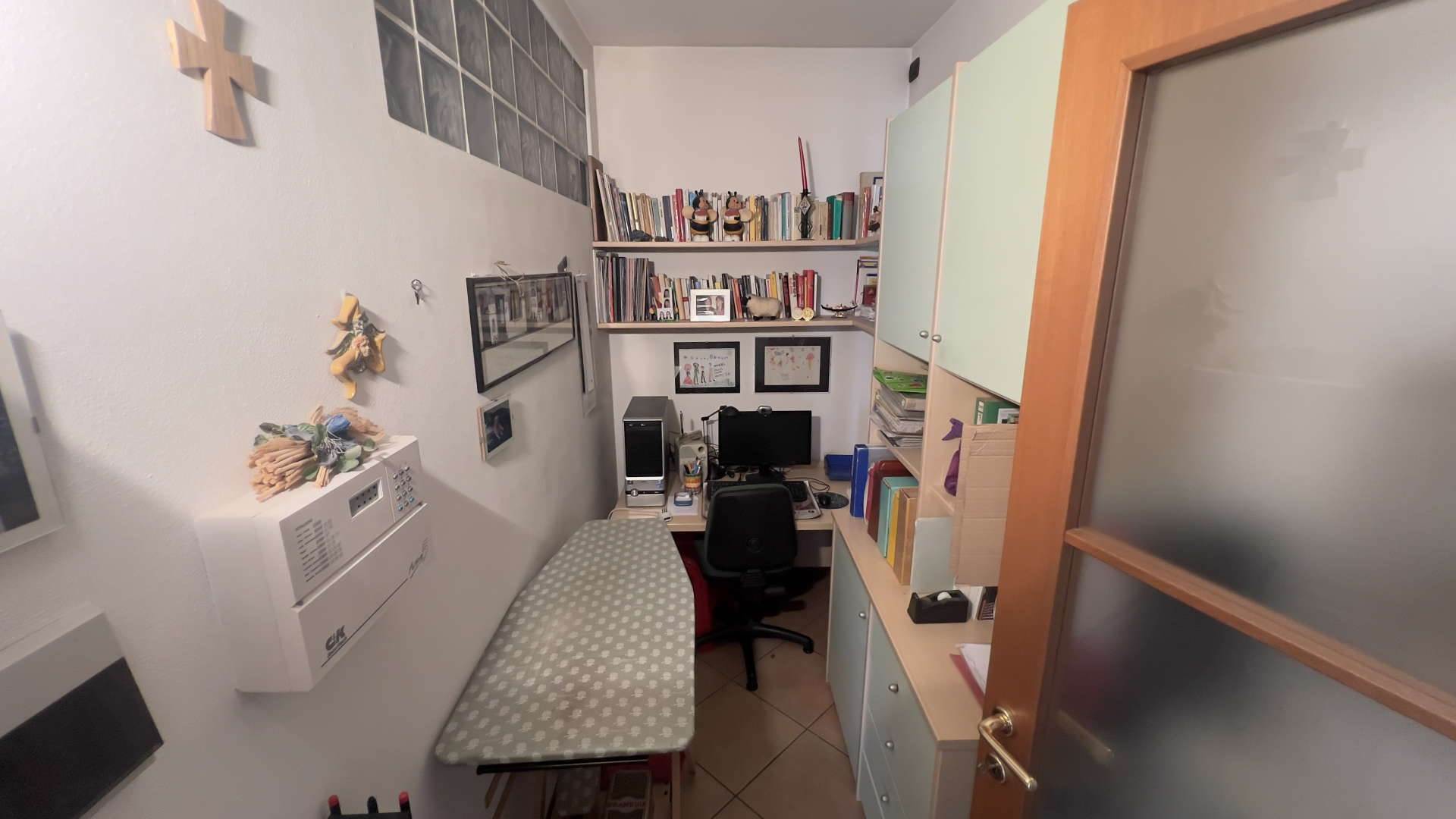 L'abitazione si compone di ingresso, angolo cottura abitabile, soggiorno luminoso, due camere da letto (di cui una matrimoniale), due bagni e ripostiglio adibito a studio, con ambienti ben distribuiti e funzionali. La presenza di un balcone aggiunge uno sfogo esterno piacevole e vivibile.
