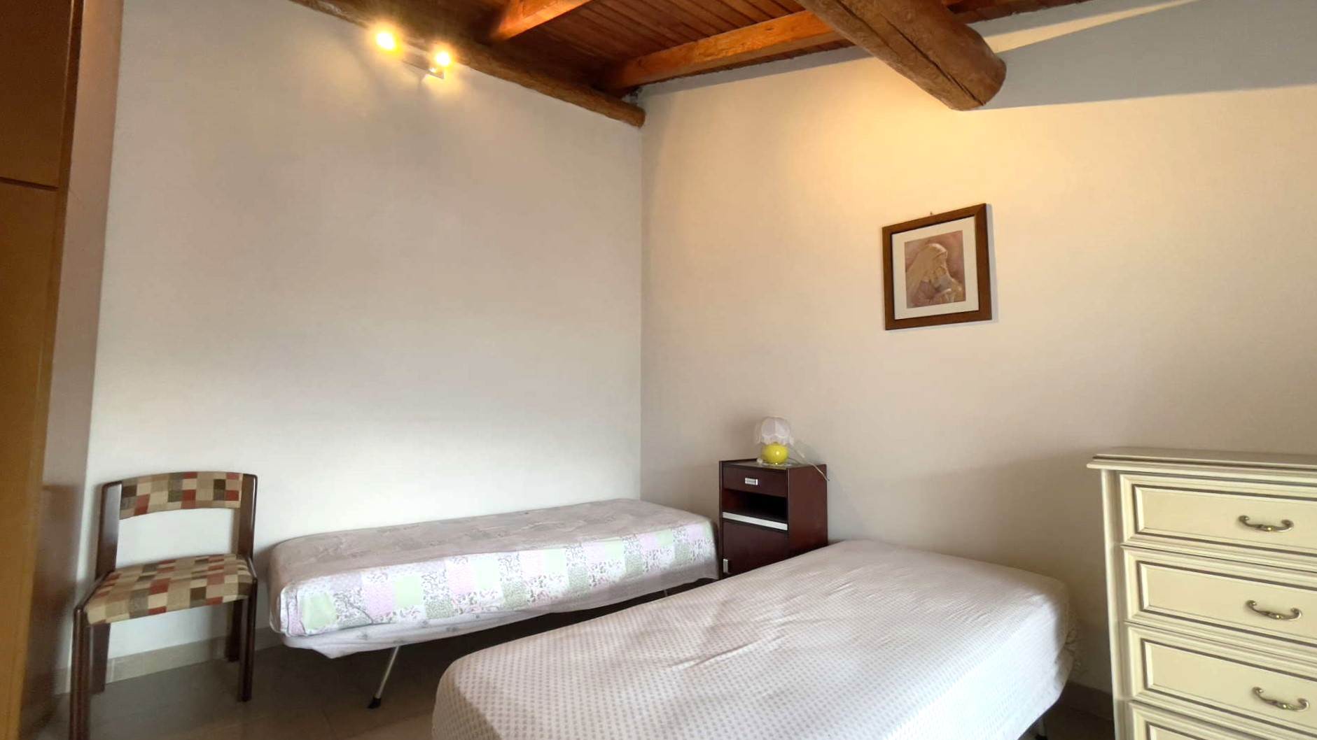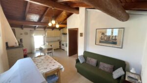 L'abitazione si distingue per l'atmosfera calda e accogliente, grazie alla presenza del camino in soggiorno, elemento che dona carattere e comfort agli ambienti.La proprietà si compone di un luminoso soggiorno con angolo cottura, due camere da letto – una matrimoniale e una con due letti singoli – ed un bagno finestrato.