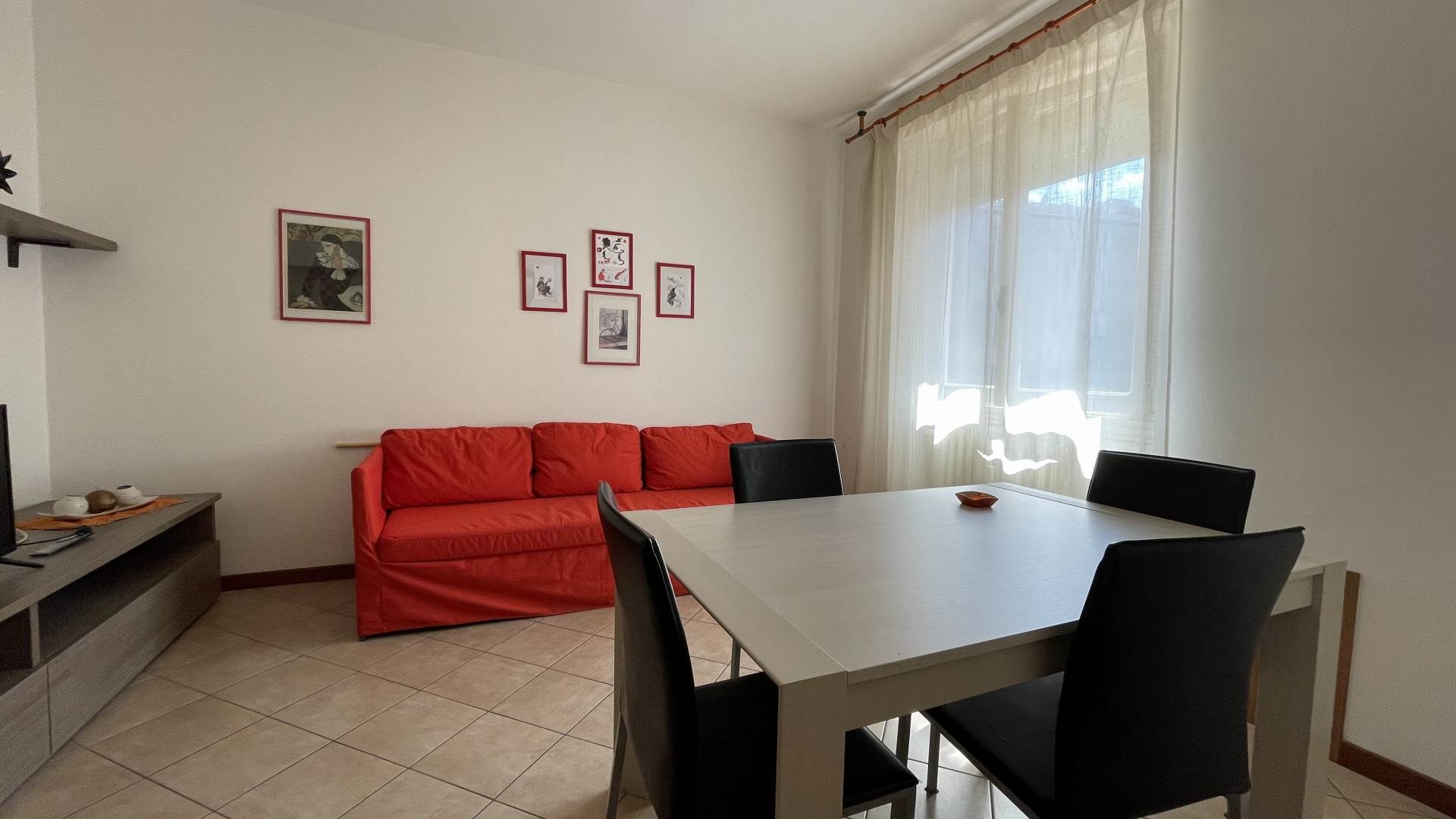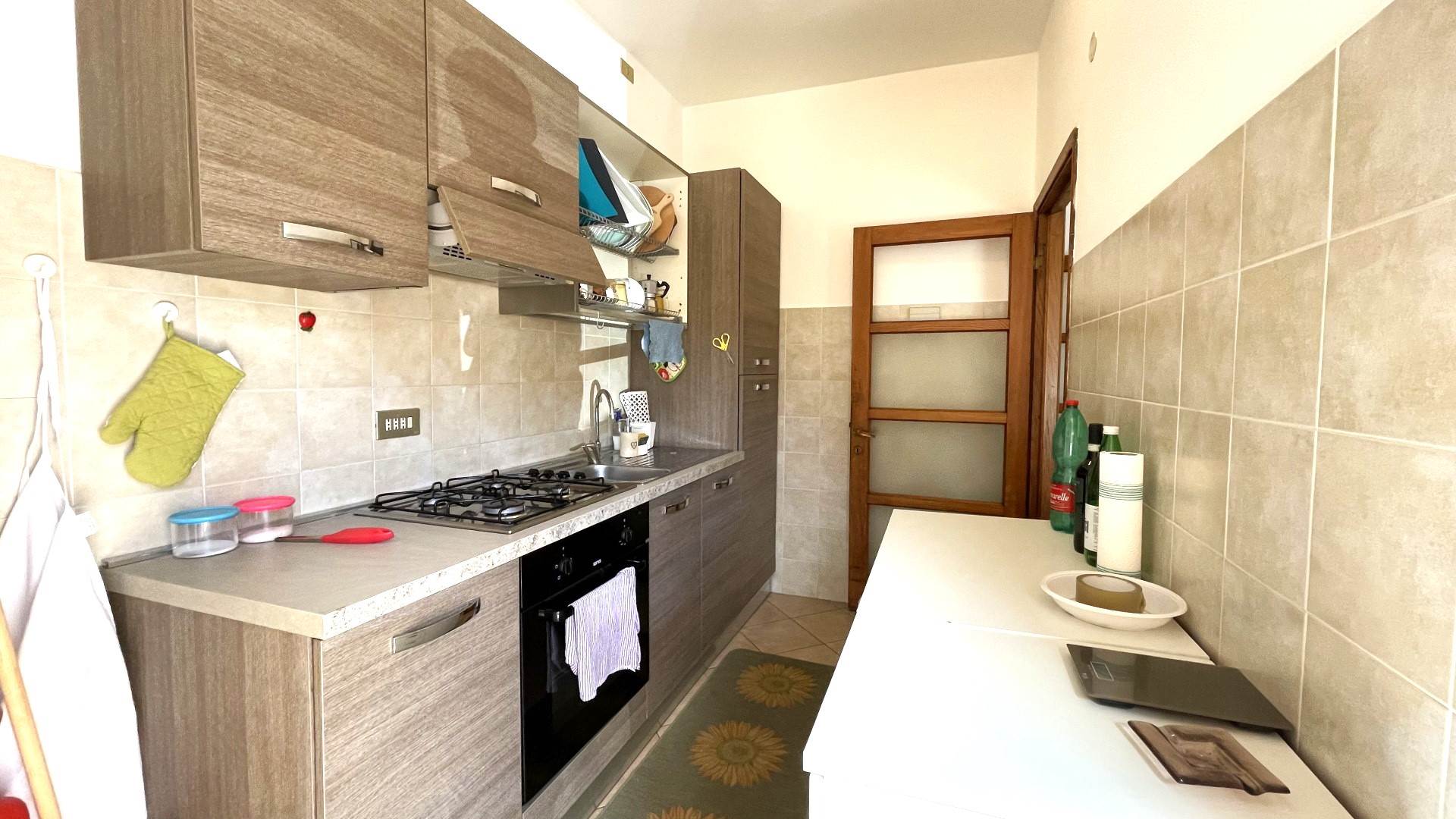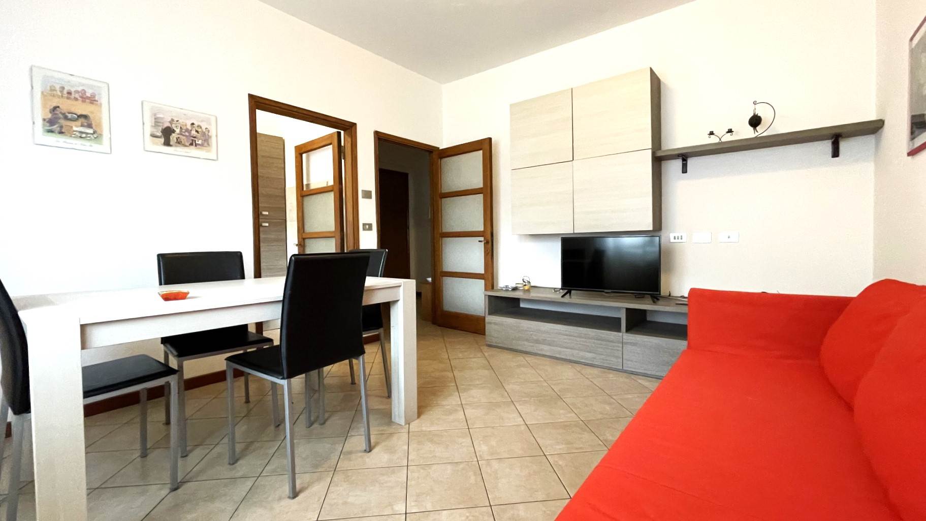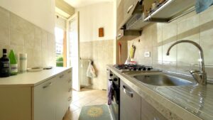 L'immobile, luminoso e funzionale, è così composto: ingresso, disimpegno, cucina attrezzata, soggiorno con divano, tavolo da pranzo e tv, due camere da letto matrimoniali e bagno con doccia e lavatrice.