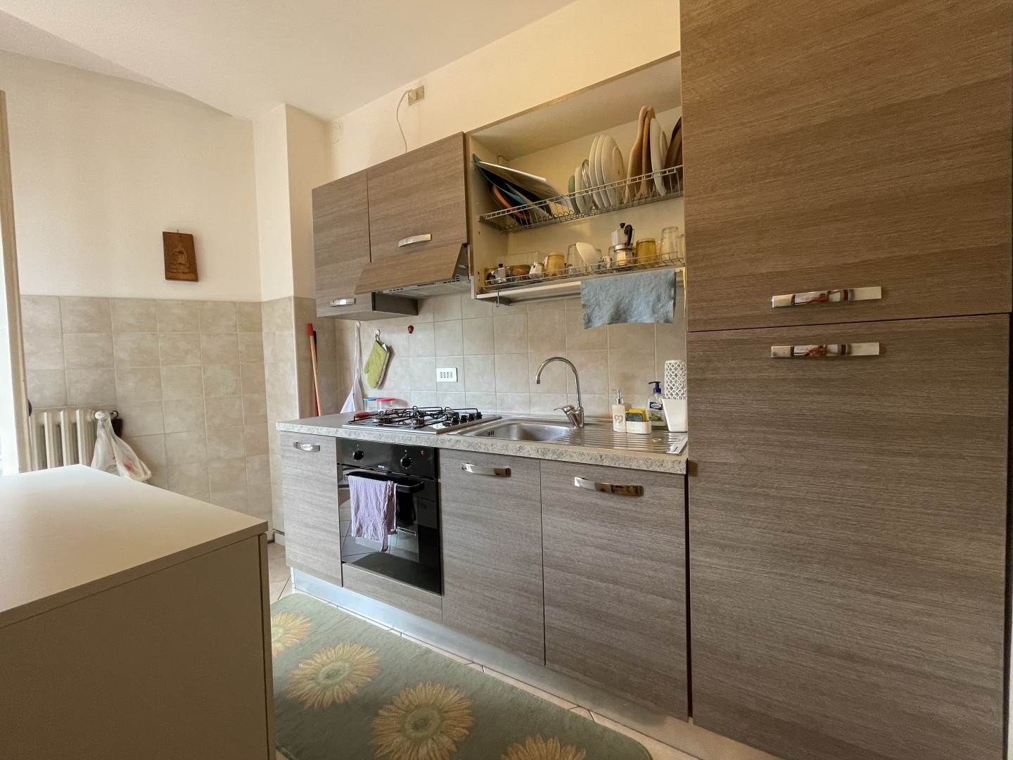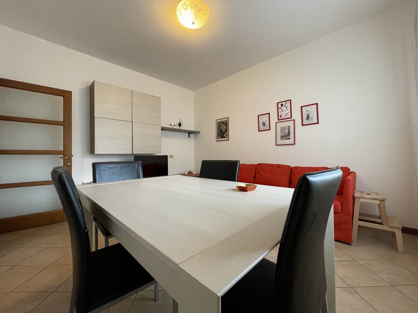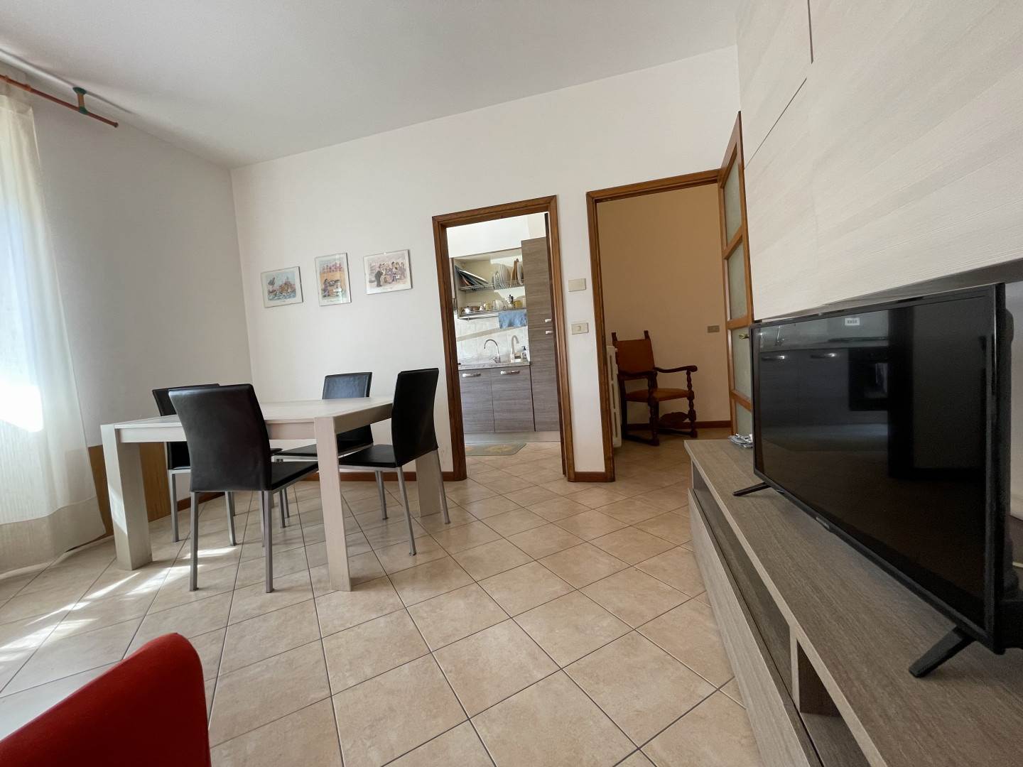 L'immobile, luminoso e funzionale, è così composto: ingresso, disimpegno, cucina attrezzata, soggiorno con divano, tavolo da pranzo e tv, due camere da letto matrimoniali e bagno con doccia e lavatrice.