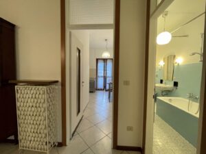 L'immobile, posto al secondo piano di una palazzina dotata di ascensore, si compone di un luminoso soggiorno arredato con divano, poltrone, televisore e tavolo da pranzo, una cucina abitabile completamente attrezzata, disimpegno, camera matrimoniale con accesso al terrazzo, condiviso anche con la zona giorno, bagno finestrato con vasca e lavatrice, oltre a comodo ripostiglio esterno.