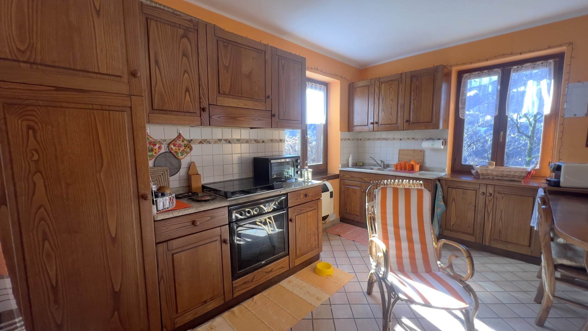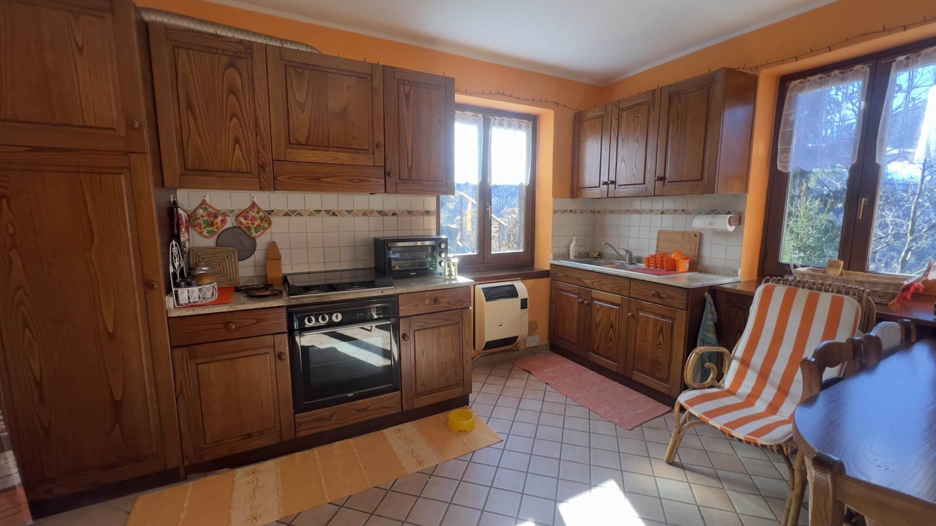 • Piano primo: due camere da letto, di cui una matrimoniale con TV e una singola con balcone panoramico, oltre a bagno.L'immobile offre una splendida vista sulla valle ed è dotato di riscaldamento autonomo a GPL.