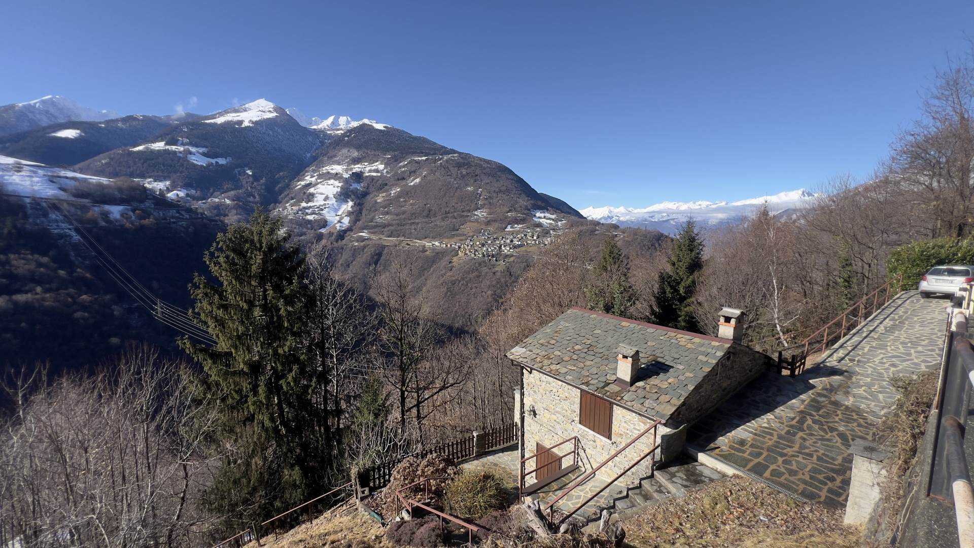 La baita è raggiungibile comodamente durante tutto l'anno e dispone di posto auto esterno riservato lungo la strada privata di accesso alla proprietà.