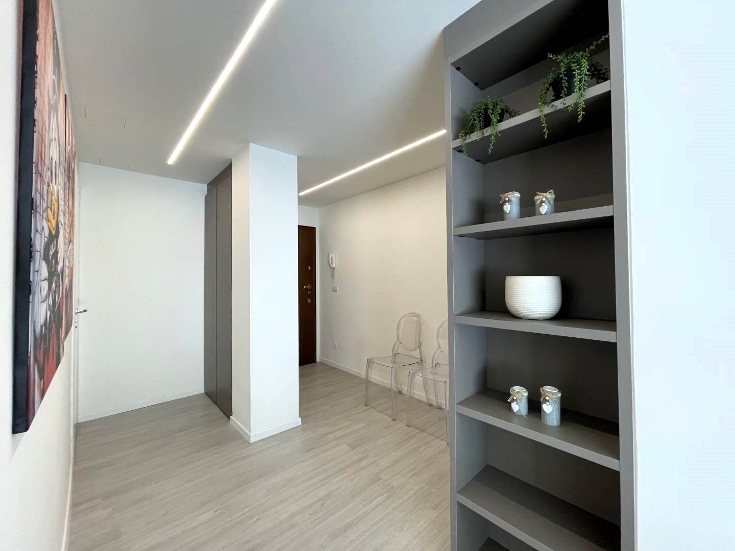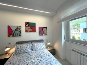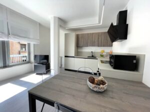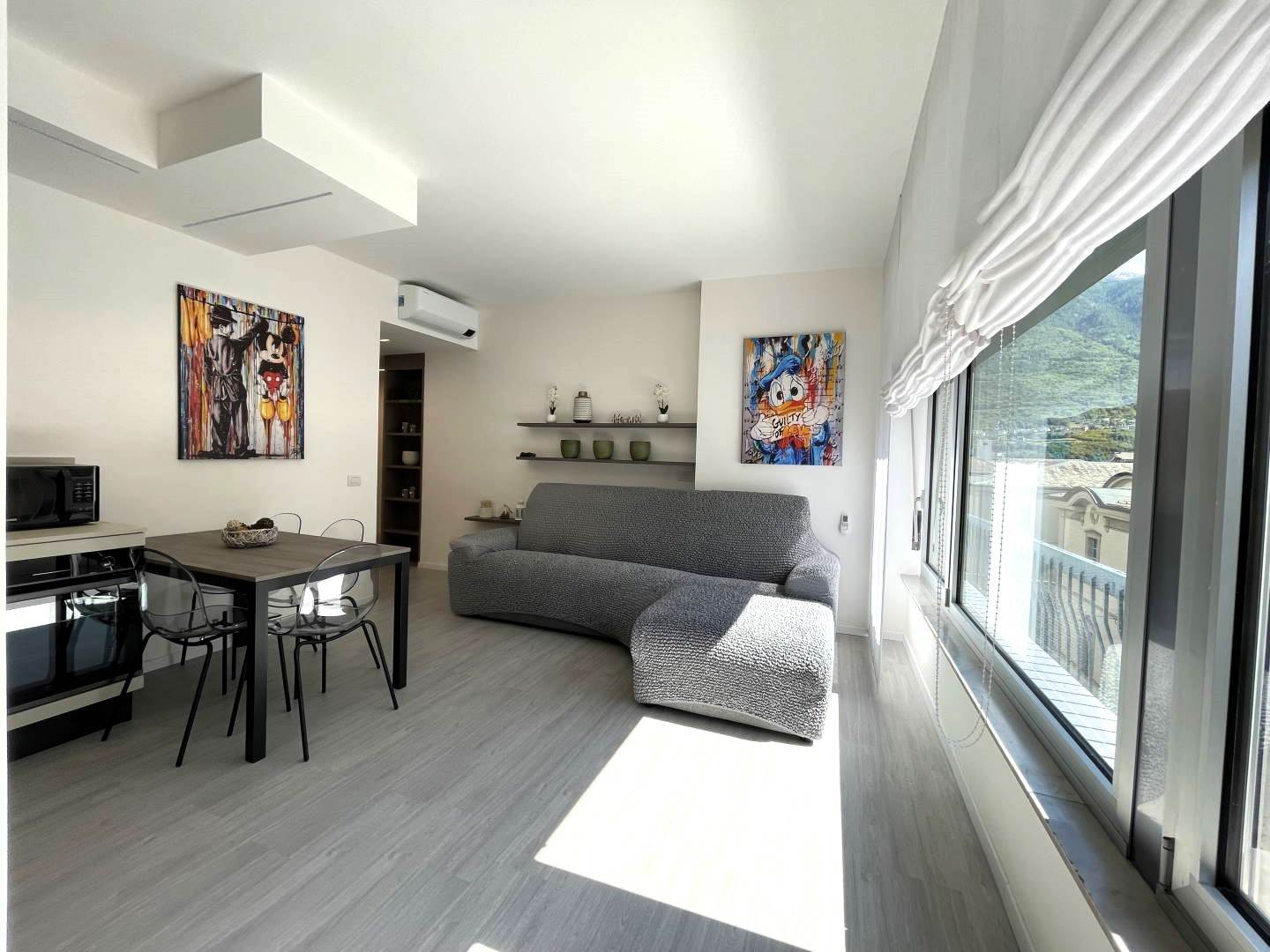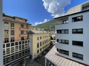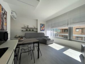 Per rendere il soggiorno ancora più piacevole, l'appartamento dispone di un condizionatore nella zona giorno e nella zona notte. La luminosità dell'ambiente è garantita dalla grande finestra del soggiorno, che offre una vista sulle cime circostanti e sul centro città.