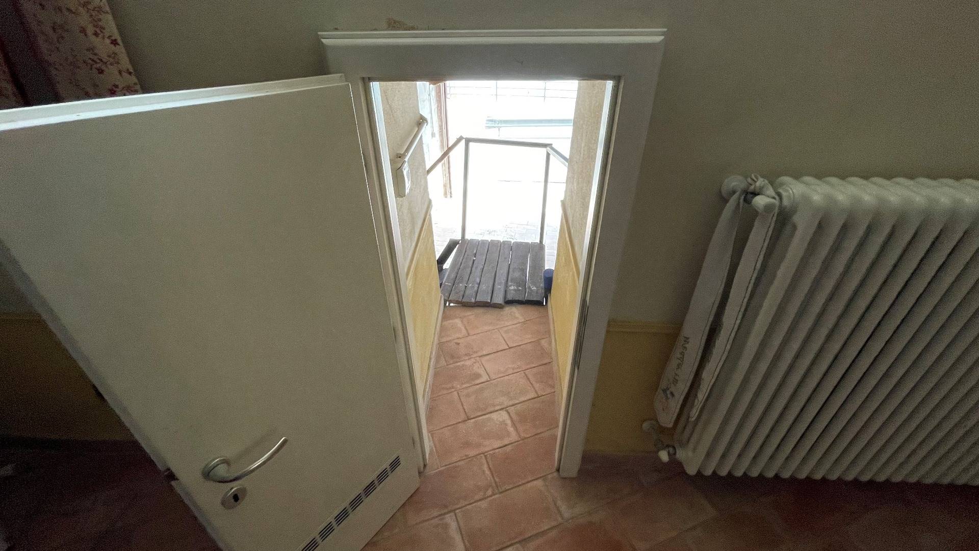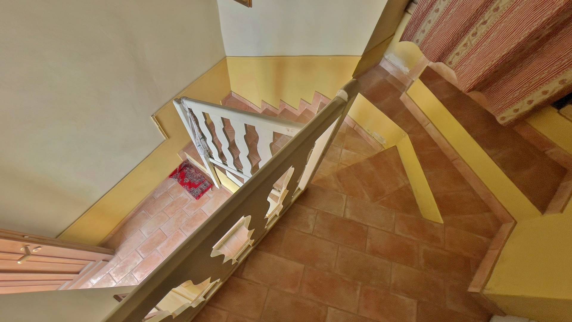 Accesso diretto dal box, oltre alla scala che porta al terrazzo. troviamo cucina abitabile tavolo e accesso diretto al box da scala in ferro coperta, dal disimpegno il primo bagno , soggiorno con tavolo e divano e camino, camera matrimoniale con bagno completo con box doccia.