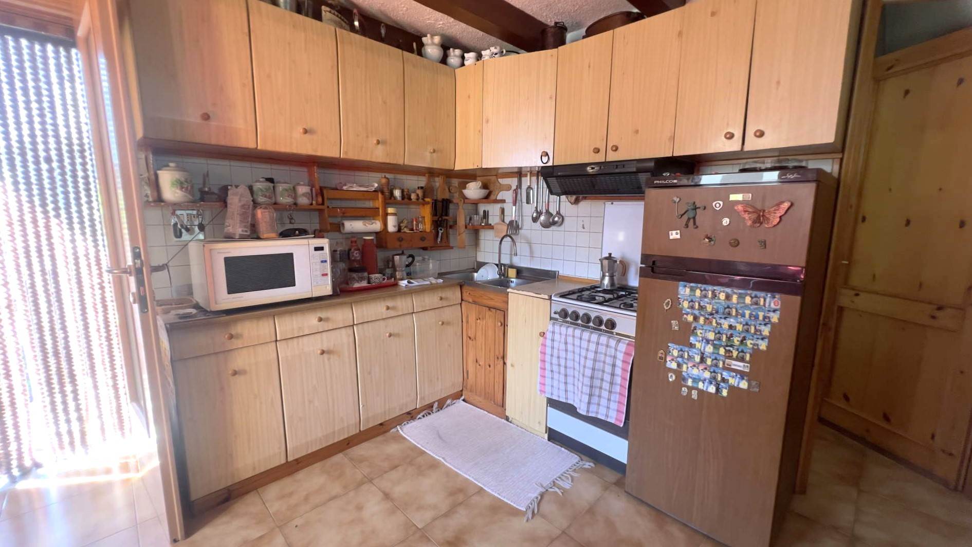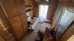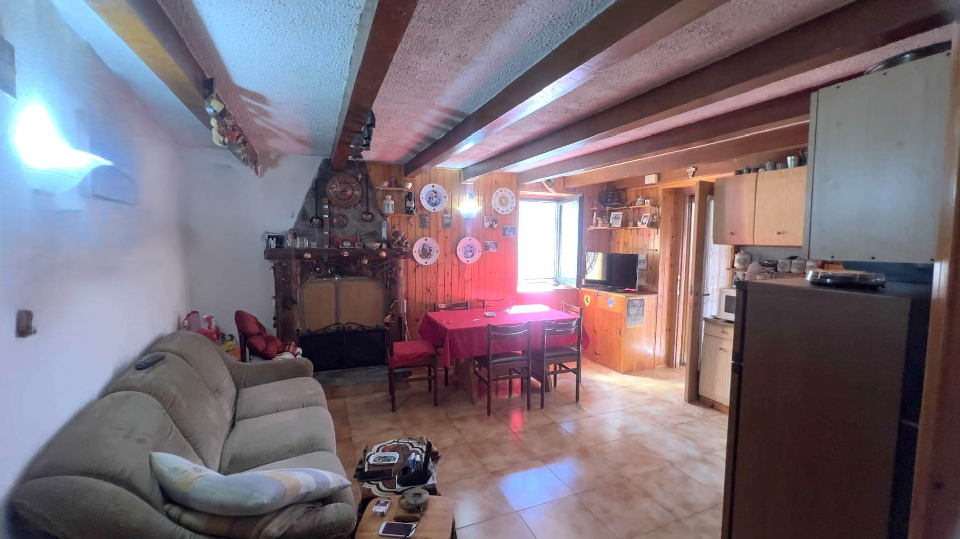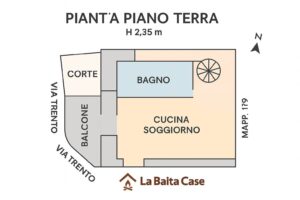 • Piano terra: soggiorno con camino a legna, cucina, bagno con doccia e terrazzo vivibile; adiacente alla casa, sotto il terrazzo, è presente un locale attrezzi attualmente utilizzato come legnaia.