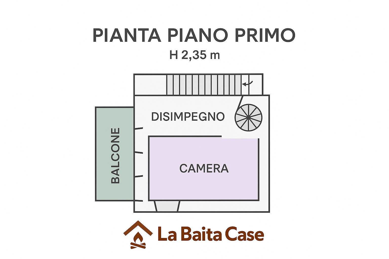 • Piano primo: camera matrimoniale, un ripostiglio (attualmente adibito a seconda cameretta) e balcone panoramico.