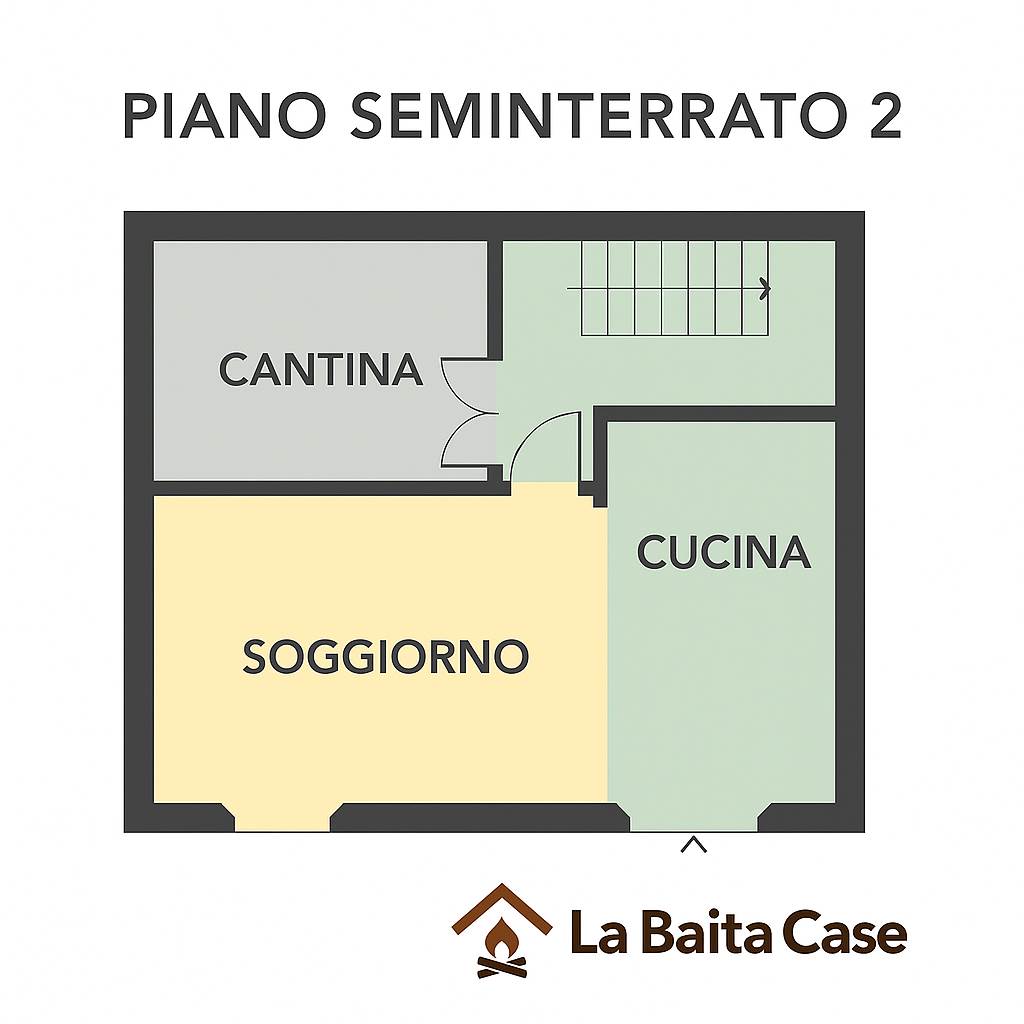 Piano semi interrato 2: accogliente soggiorno con camino e cucina, bagno e cantina;