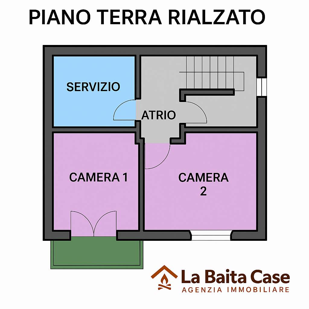 Piano terra : ingresso principale con atrio, due ampie camere matrimoniali e bagno;