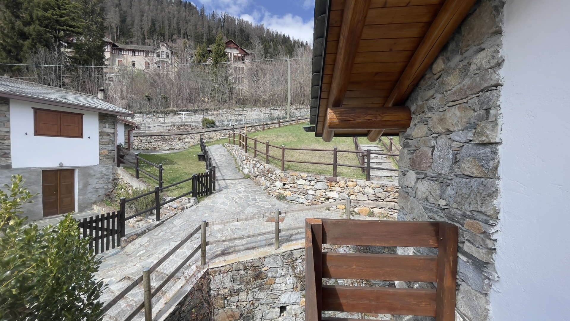 L'immobile, realizzato nel 2008, presenta come elementi caratteristici il legno e la pietra in tipico stile montano. Oltre al giardino di proprietà dispone di box auto, e giardino comune di 1115 mq.