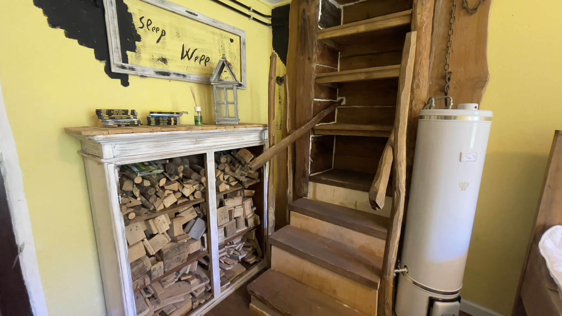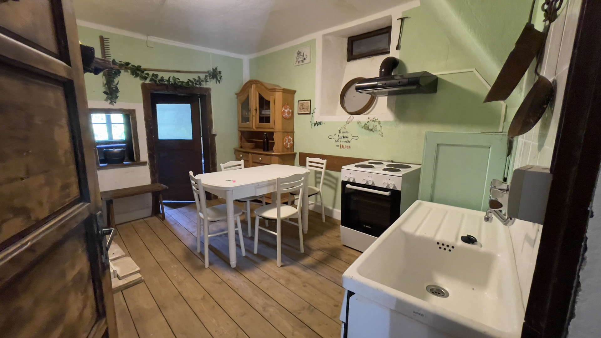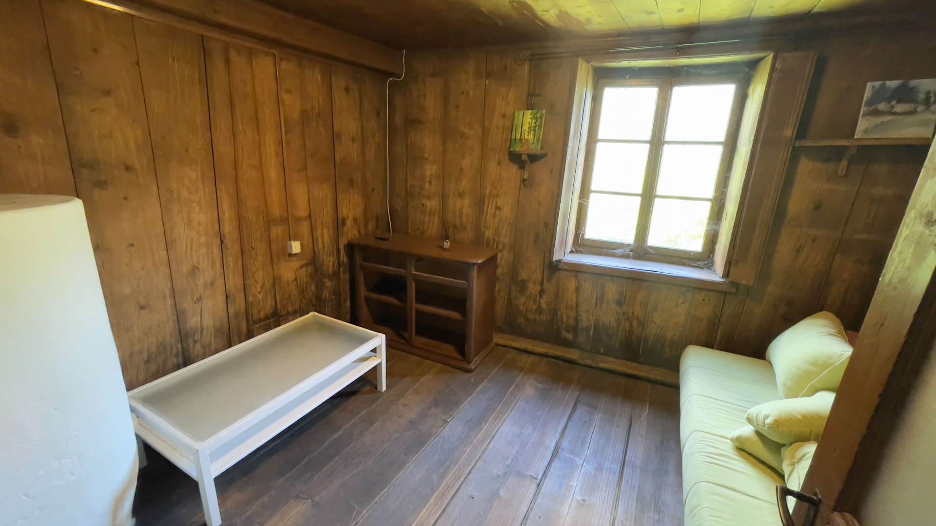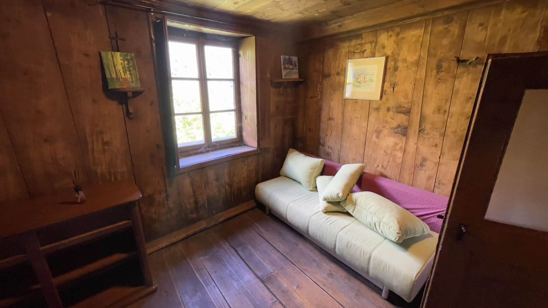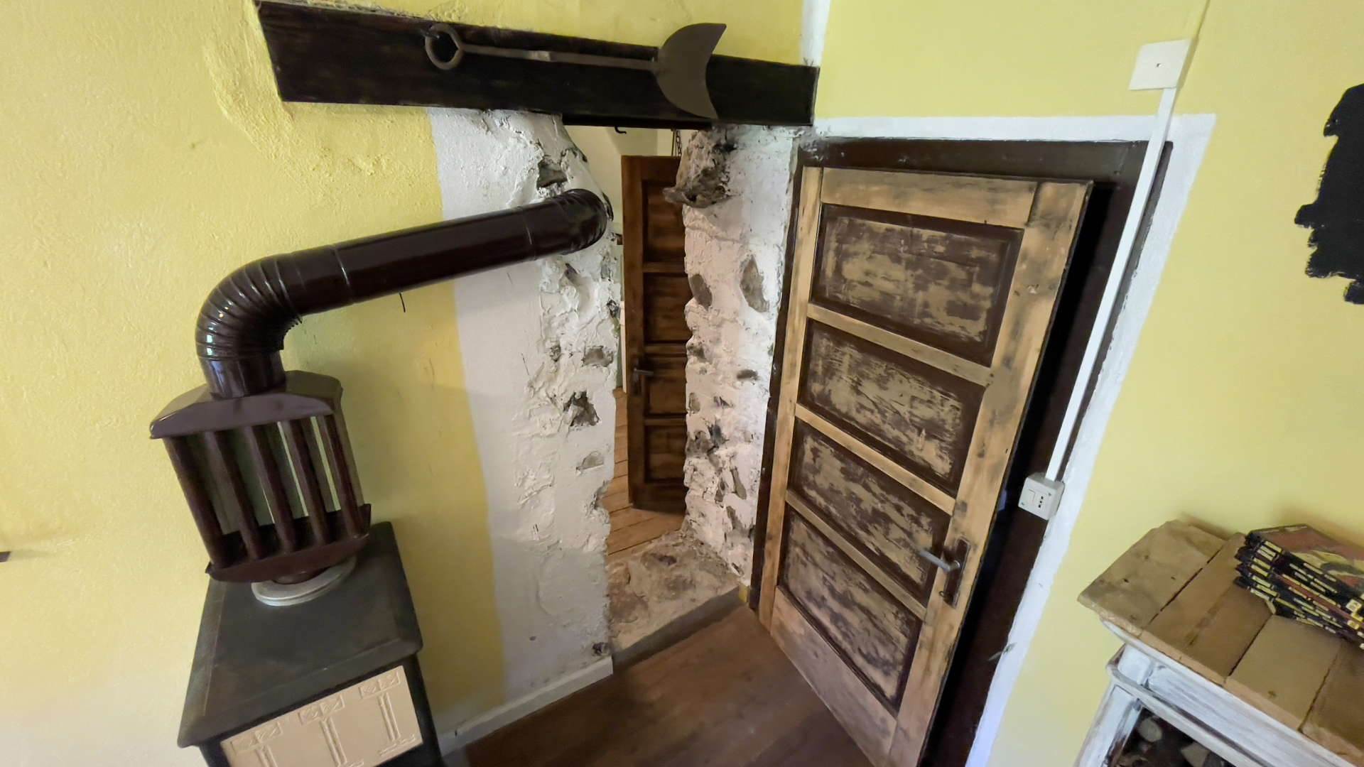 Gli interni presentano finiture in legno e un marcato stile rustico alpino, che conferisce all’ambiente un’atmosfera calda e accogliente. Il riscaldamento è alimentato da stufa a legna.