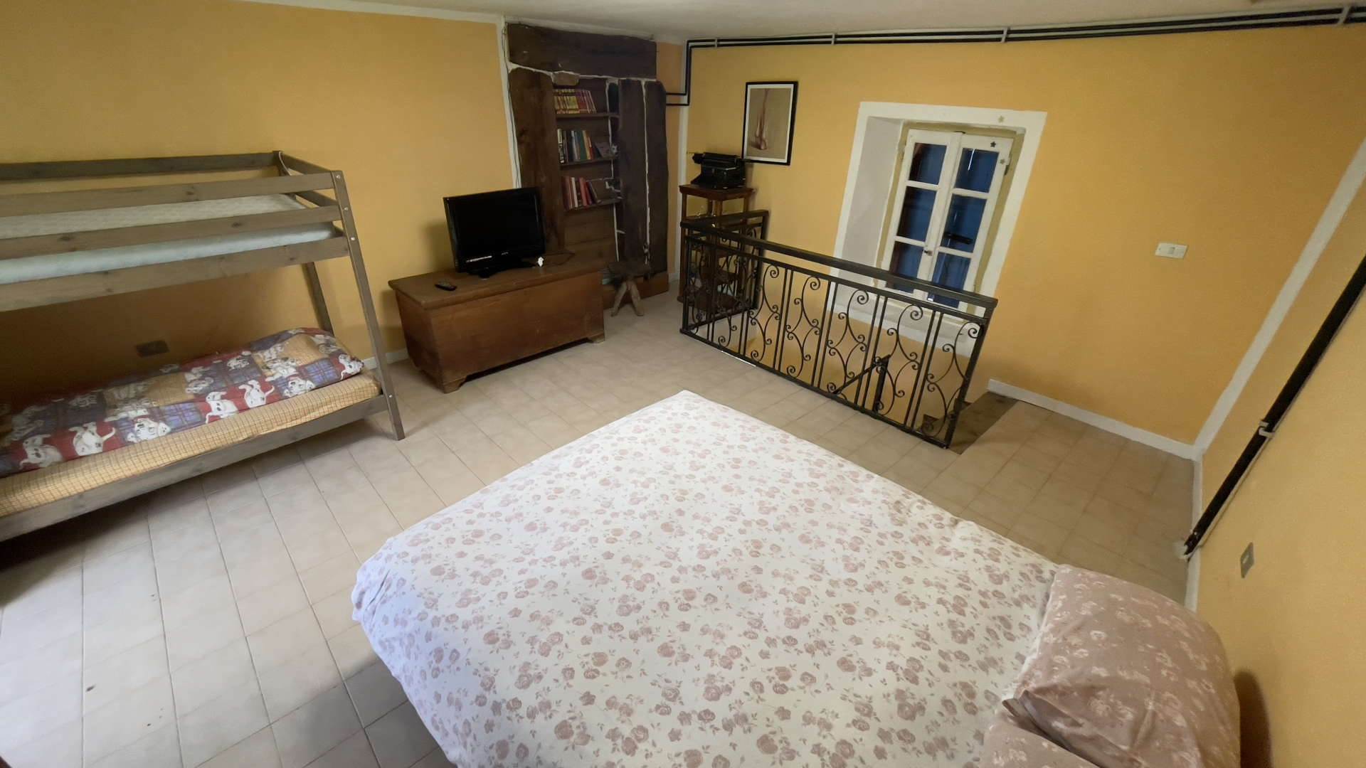 Piano primo: camera da letto spaziosa, arredata con letto matrimoniale e letto a castello.