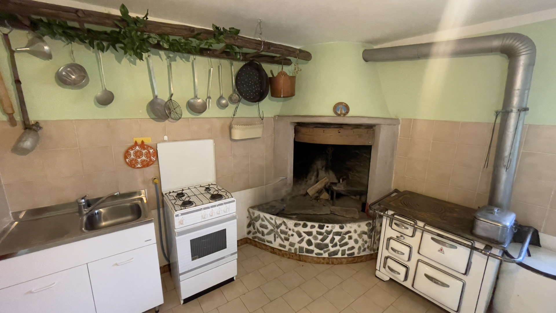Piano terra: ingresso diretto sull’area verde circostante, zona giorno con soggiorno ed angolo cottura, camino e bagno con doccia;