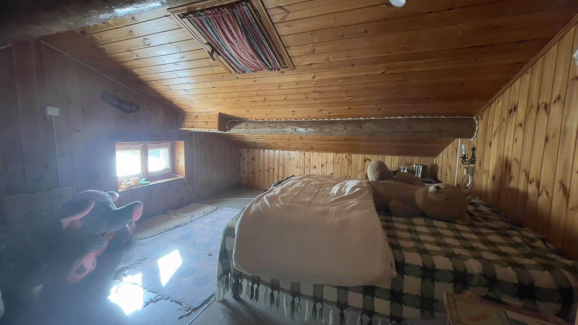 Dall’ingresso comune, procedendo al secondo piano, si arriva all’appartamento che dispone di angolo cottura con tavolo da pranzo, soggiorno con caratteristico caminetto e stufa a pellet e con accesso al balcone, ampia camera da letto perlinata con accesso al secondo balcone e bagno con doccia; da vano scala comune si accede ad una porzione di sottotetto completamente perlinato che al momento è adibito come ulteriore cameretta.