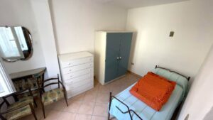 Secondo piano: seconda camera matrimoniale con accesso a un vano ripostiglio, attualmente utilizzato come cameretta singola. Non saranno ceduti con l'immobile: la cassettiera bianca della cameretta e il mobile marrone presente sulle scale.