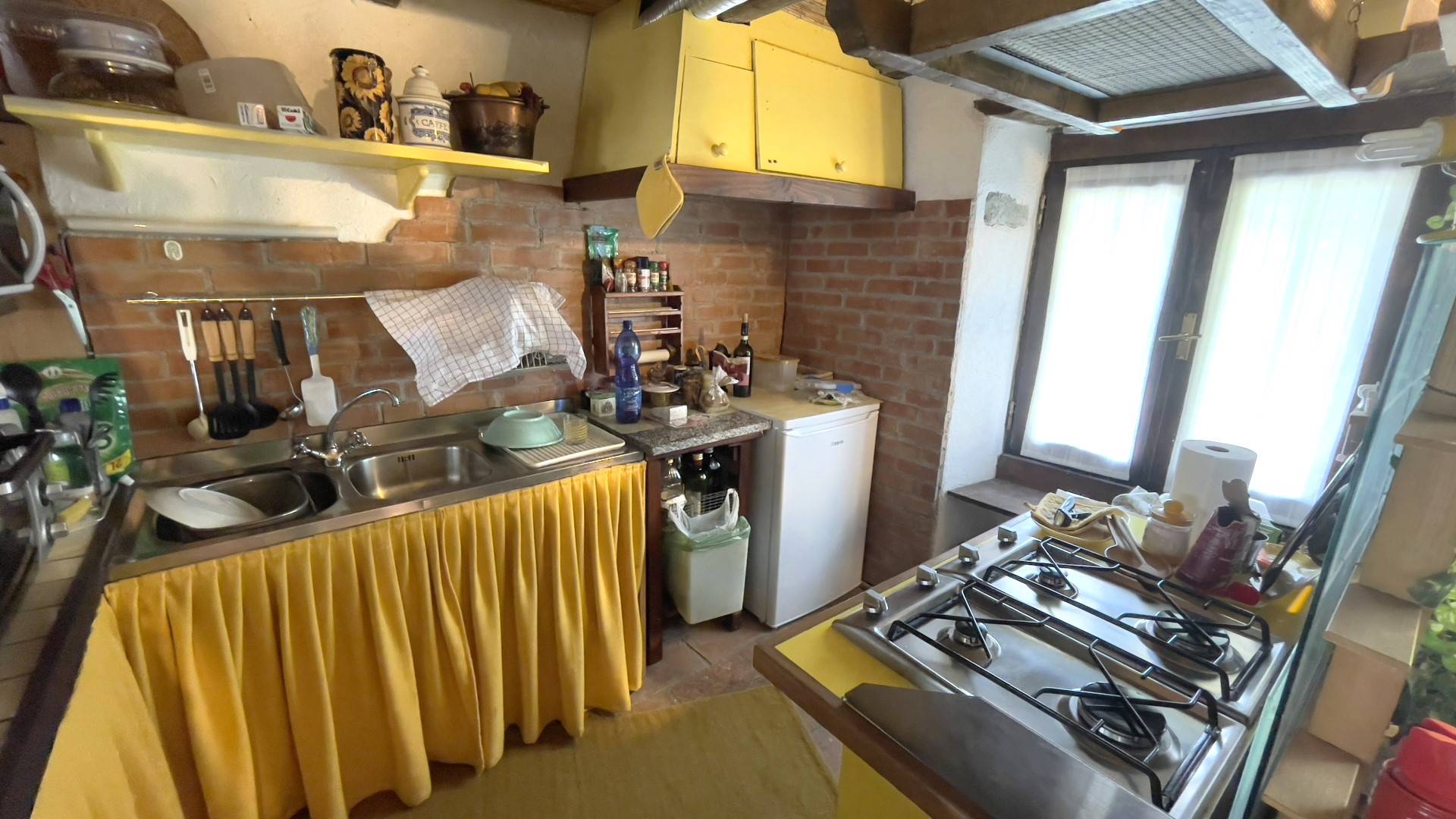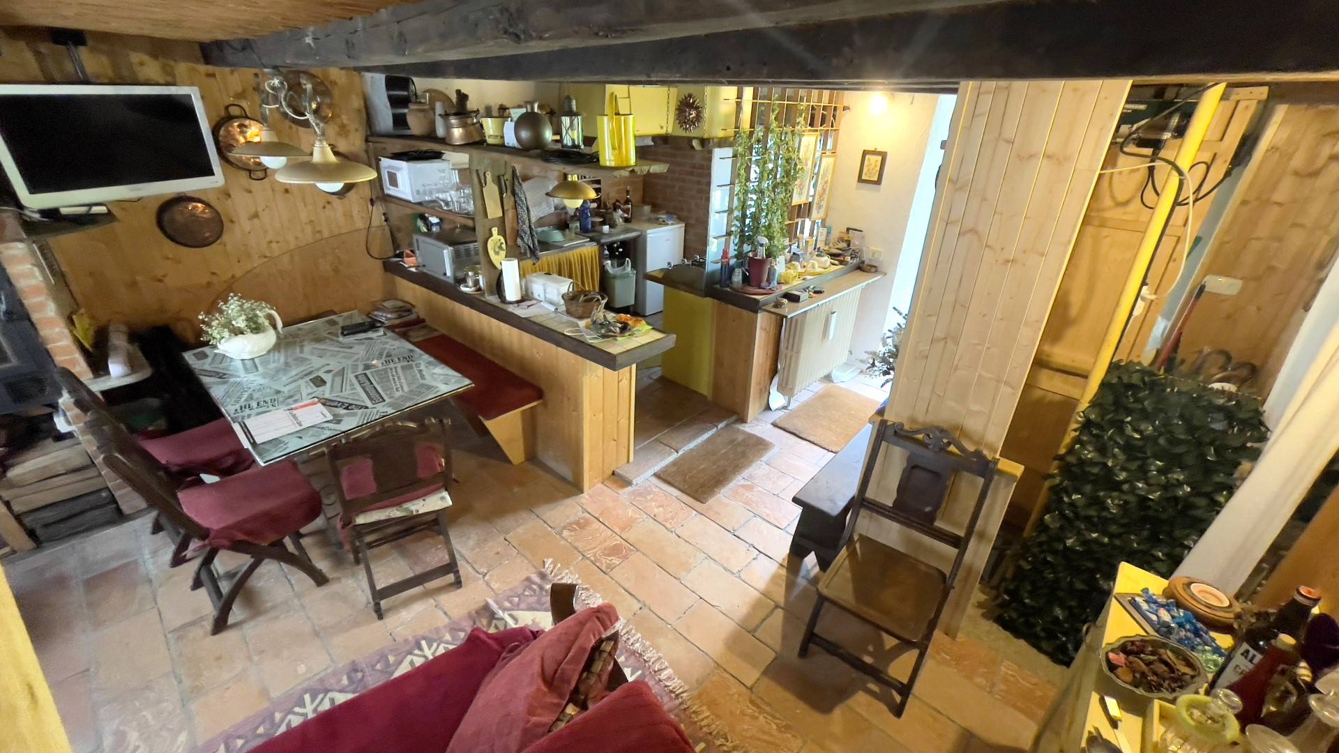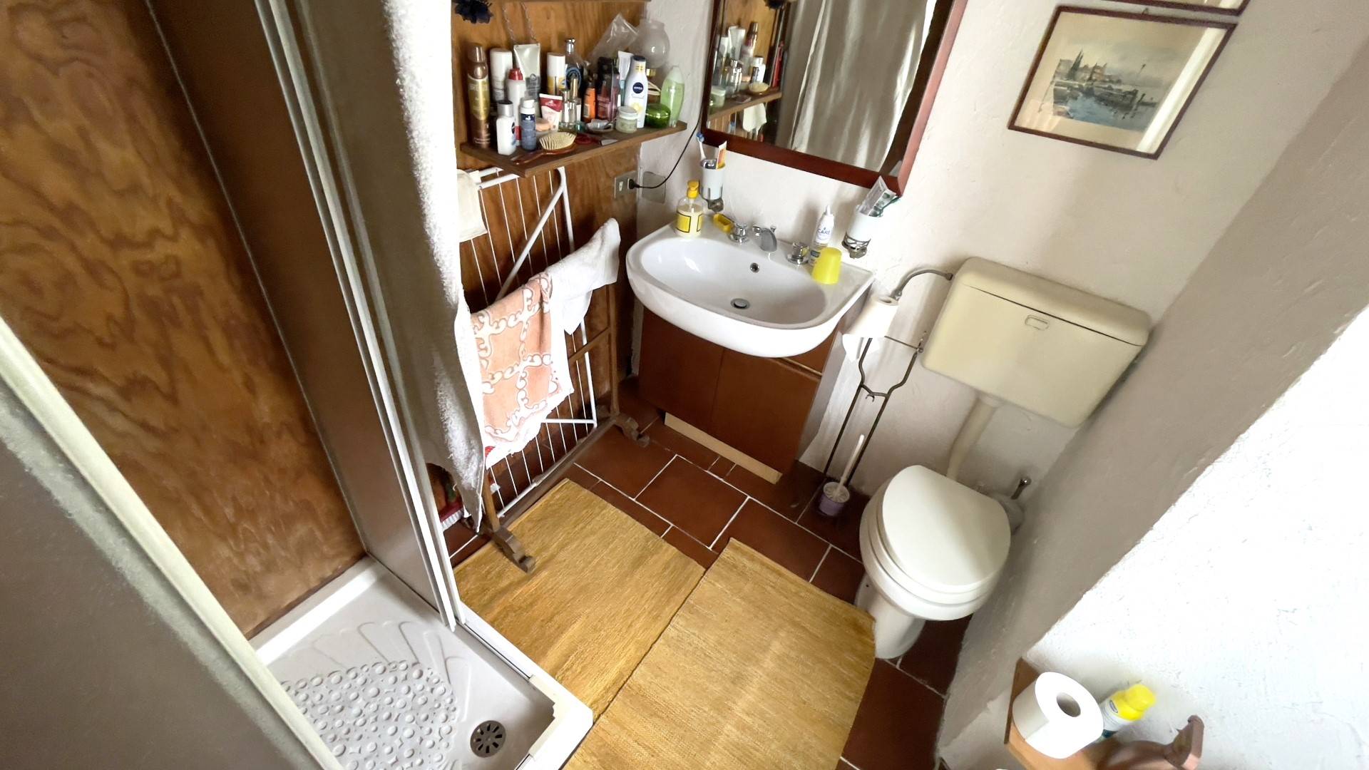 L'immobile, per un totale di 108 mq, si sviluppa su 3 livelli: al primo piano troviamo la zona giorno finemente arredata, composta da angolo cottura e soggiorno. Da notare il turbocamino ventilato in muratura e le perline che conferiscono calore all'ambiente. Salendo la scala interna in pietra e legno raggiungiamo il secondo piano, dove troviamo un bagno completo con box doccia e la zona notte, suddivisa in camera matrimoniale e salottino. Da entrambi i vani è possibile accedere ai due terrazzi con vista su Albosaggia e sull'area circostante. Percorrendo la striscia di terreno con diritto di passo comune, raggiungiamo il piano terra, dove troviamo: un locale che può essere adibito a seconda camera, un ripostiglio/cantina per ricovero attrezzi; un secondo bagno completo con vasca. Da notare la presenza di un montacarichi elettrico attualmente in uso. Di fronte all'immobile, troviamo una graziosa area esterna di pertinenza con porticato e giardino. Riscaldamento autonomo. Boiler elettrico per l'acqua calda. Classe energetica: G.