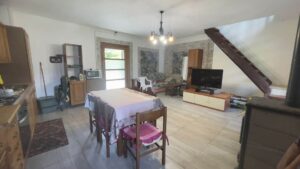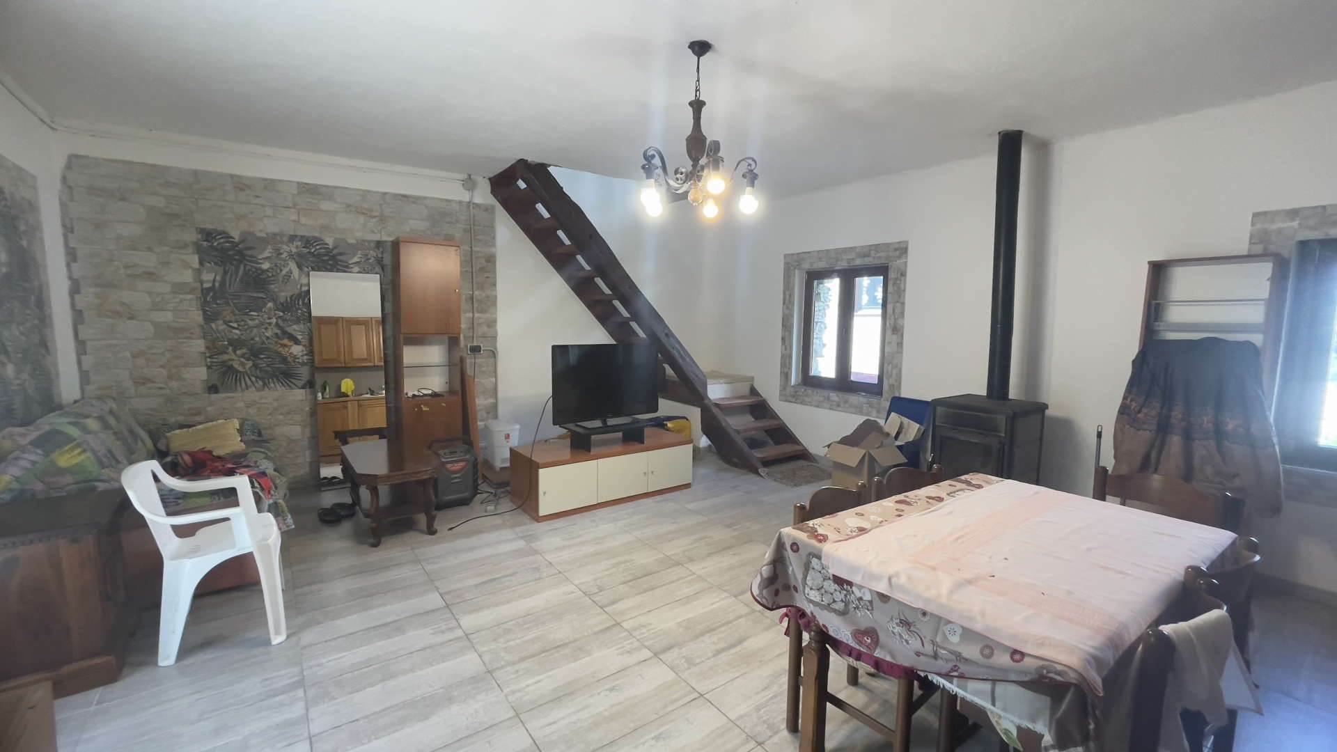 L'immobile si sviluppa su più livelli ed è attualmente oggetto di ristrutturazione interna. Al piano terra si trova la zona giorno con soggiorno e angolo cottura, riscaldata da una stufa a legna che contribuisce a creare un'atmosfera calda e accogliente. Una scala interna conduce alla zona notte, dove sono presenti un disimpegno, una camera da letto e un bagno. Gli ambienti risultano comodi e funzionali, ideali sia per uso residenziale che come casa vacanze.