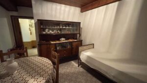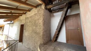La proprietà, è una caratteristica casa della nonna, all'interno del centro abitato del paese. La casa, a piano terra, dispone di cucina abitabile, salotto-zona pranzo e bagno; da scala interna in legno si prosegue nella zona notte con 2 ampie camere da letto e un salottino dal quale si può uscire sul ballatoio esterno; sottotetto al piano superiore al rustico; nel seminterrato è presente una cantina. Il tetto è stato in buona parte sistemato; sono infatti visibili travi in legno di recente fattura.