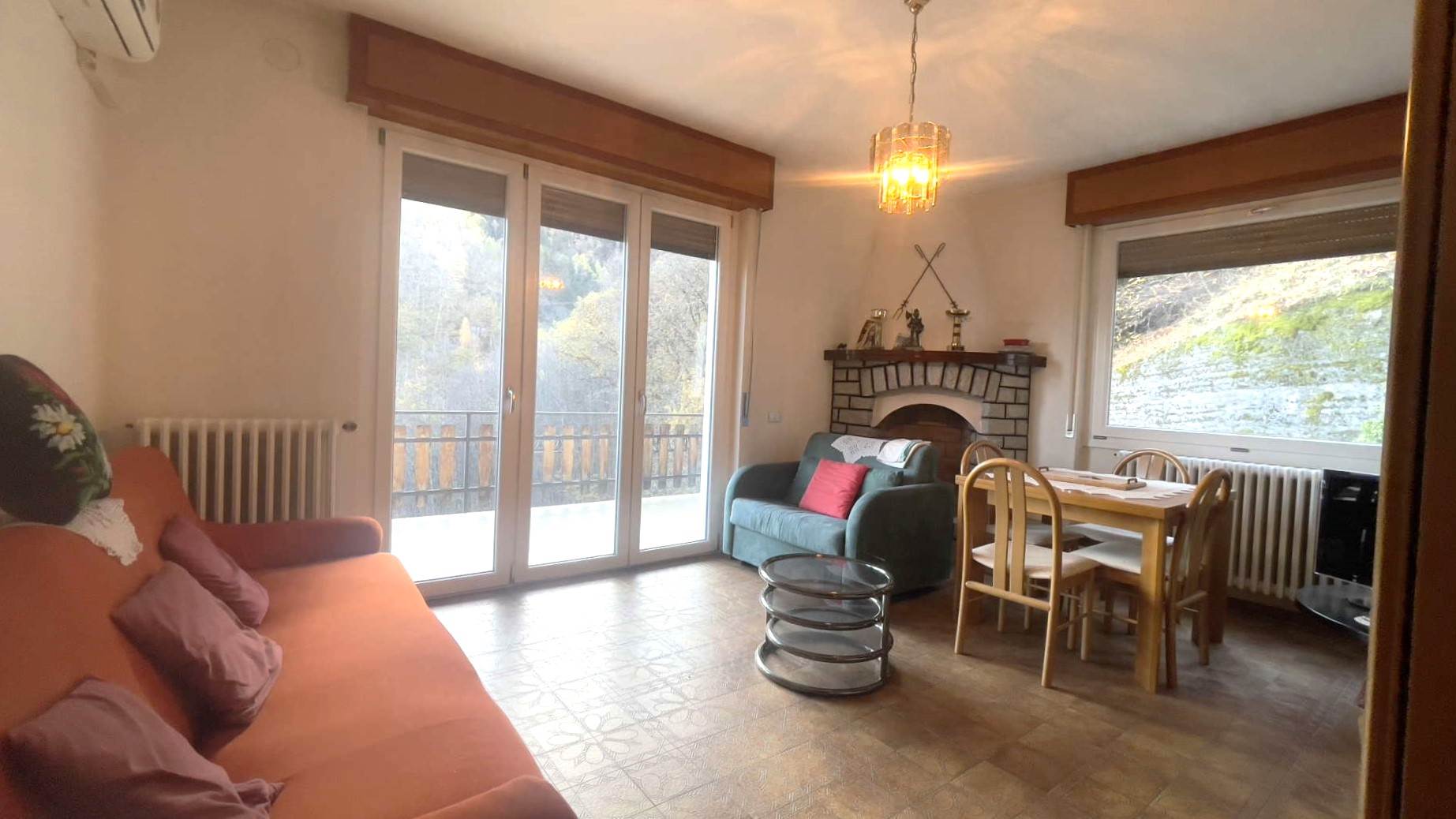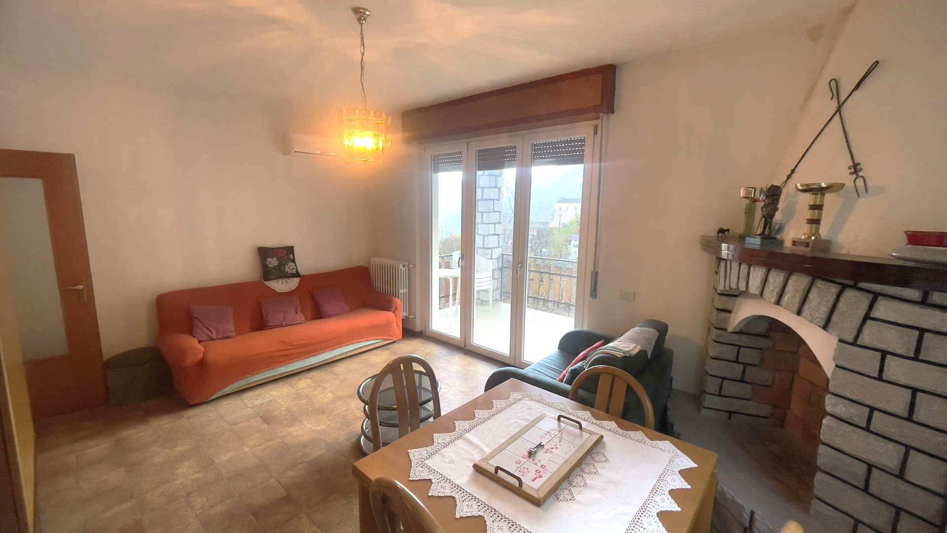 Primo piano: unità abitativa composta da atrio, disimpegno, 2 ampie camere da letto, bagno, cucina abitabile e soggiorno con ampio terrazzo panoramico molto godibile oltre ad un bel camino. Questo piano dispone di ben 3 balconi e molte finestre con serramenti nuovi. E' inoltre presente una botola per accedere al sottotetto nel disimpegno.