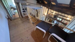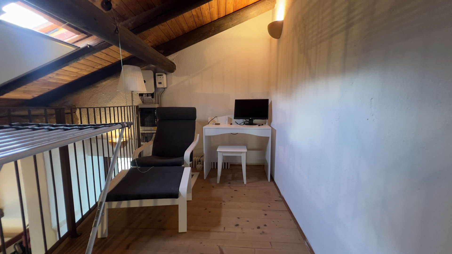 • Piano primo accessibile con scala interna: soppalco che potrebbe essere utilizzato come studio e camera matrimoniale con vista.