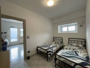 L'appartamento è composto da soggiorno arredato con divano e televisore, cucina attrezzata con tavolo da pranzo, due camere da letto (una matrimoniale e una con due letti singoli), bagno con doccia e lavatrice. Dal soggiorno si accede a una area esterna ad uso condominiale, ideale come sfogo all'aperto.