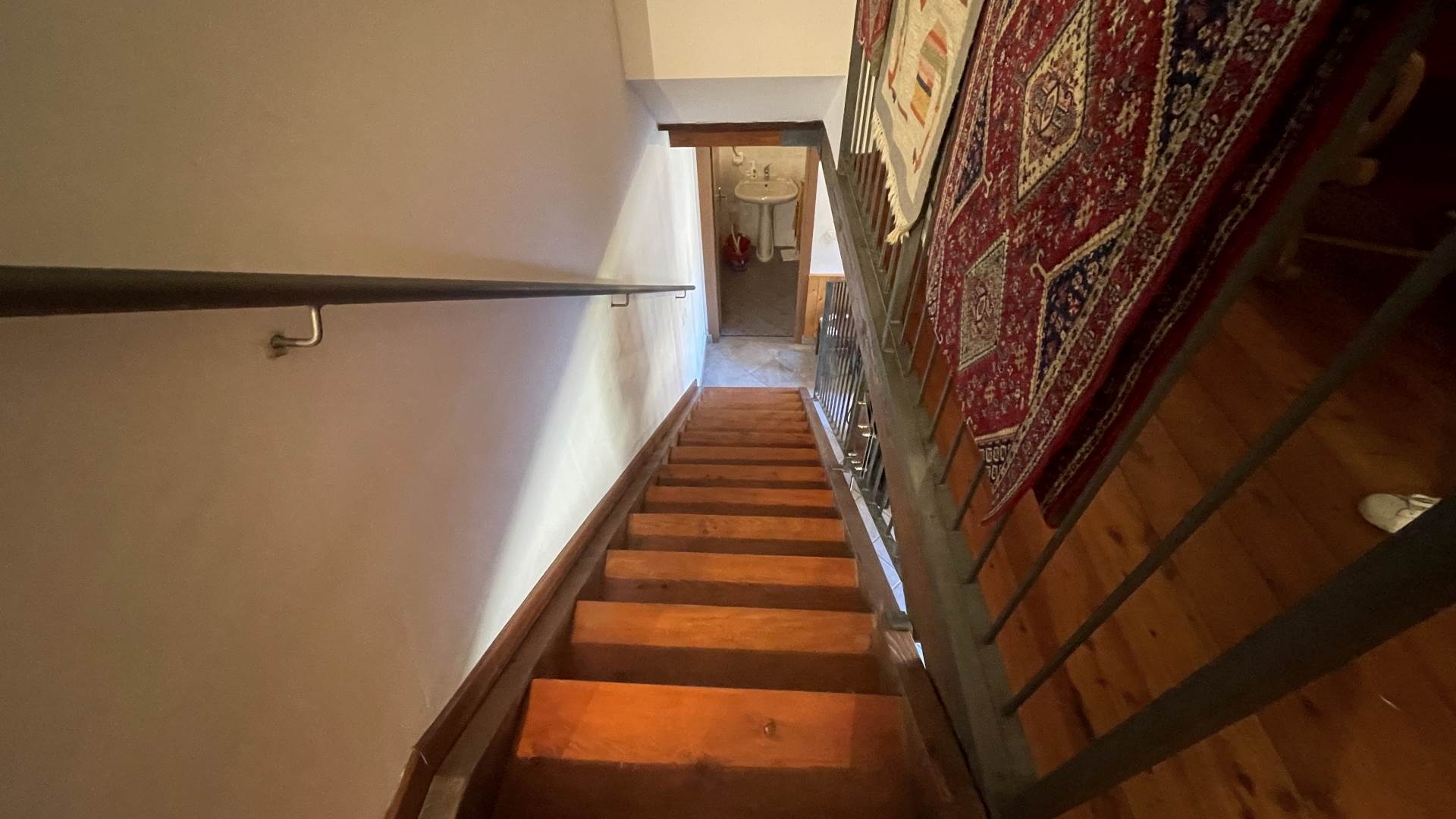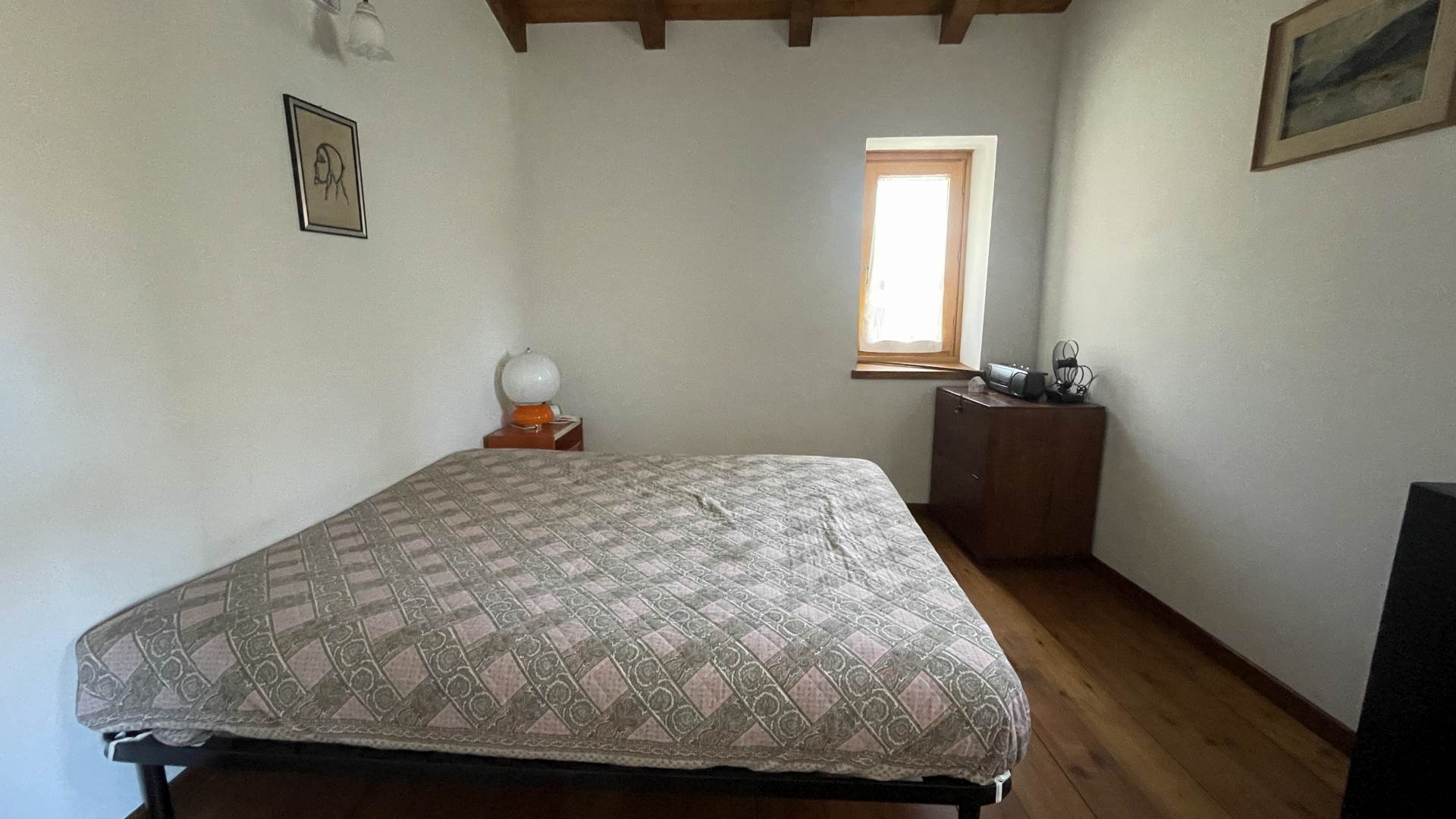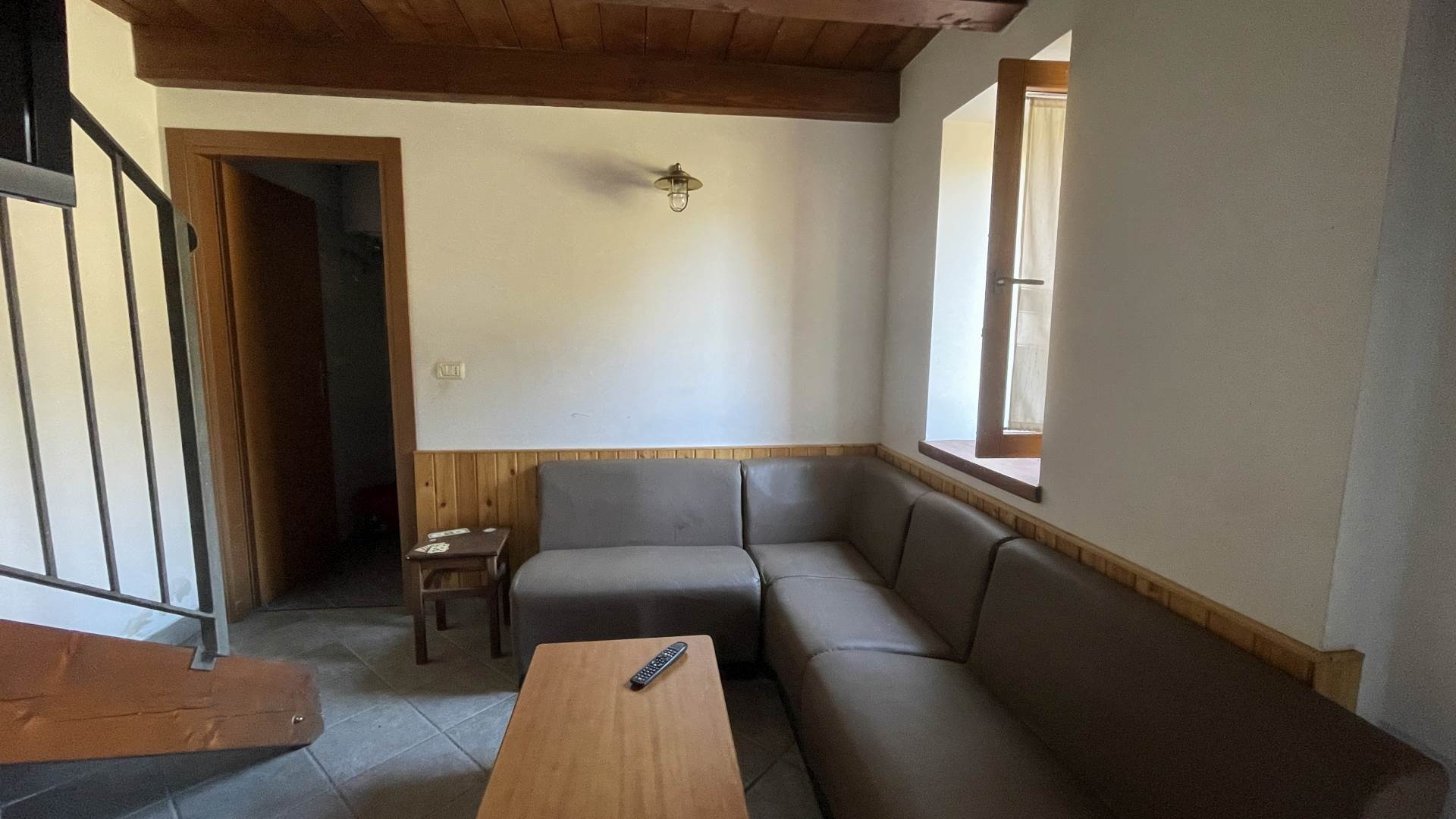 L'abitazione si sviluppa su più livelli: al piano seminterrato è presente una comoda cantina, ideale come locale deposito. Il piano terra ospita la zona giorno composta da soggiorno, cucina e bagno. Tramite scala interna si accede al primo piano, dove si trovano due camere da letto matrimoniali, e una terza camera da letto dotata di letto a castello e accesso al balcone.